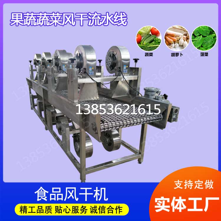 设备具备多种调节功能,清洗段可调节水流强度与气泡密度,适配不同品类果蔬;风干段可调节风机转速与输送速度,根据果蔬含水量灵活调整,确保风干效果的同时,避免过度风干导致果蔬失水变柴。机身采用食品级材质,易清洁、耐腐蚀,符合食品加工卫生标准,可长期稳定运行。